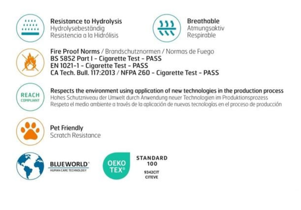 - Độ mài mòn: >40.000 lần cọ xát không gây sờn (EN ISO 12947-1,2)