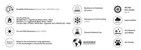 - Khả năng chống bạc màu với nước biển: mức 5 (EN ISO 105-E02)